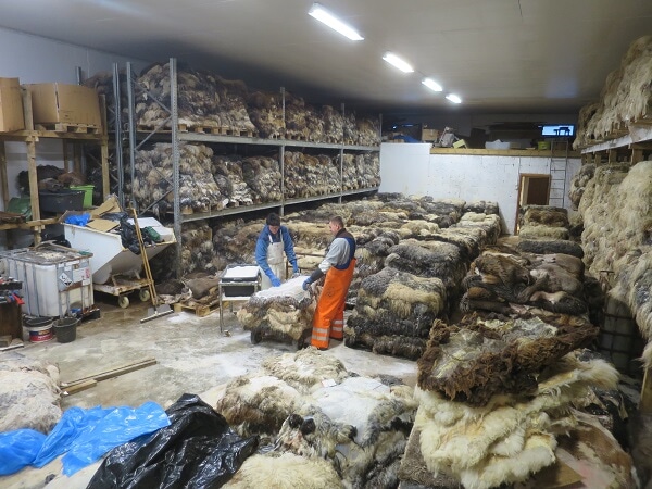 Saueskinn i mengdevis Her strøymer det på med skinn til leigeberedning og skinn me kjøper. Denne veka er leigeberedning av saue-/lammeskinn, som er registrert t.o.m 11.8.2017, i arbeid og dei blir ferdige før jul. I neste veke byrjar me å ta i arbeid skinn registrert etter 11.8.2017. Dei blir ferdige i januar og framover.