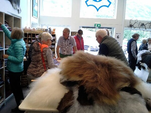 Besøk frå Australia I går hadde me hyggeleg besøk av ei gruppe frå Australia. Dei kom med buss og turen var organisert av Jenny Campbell. Dei var veldig interessert i reinskinn men også andre skinnprodukt.