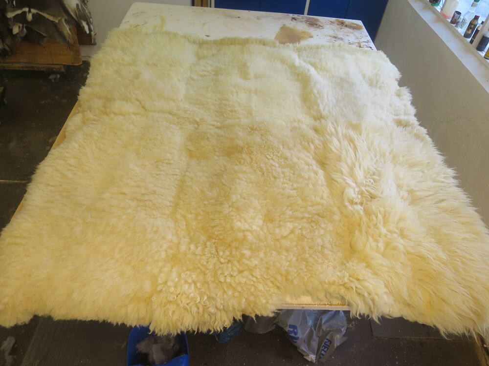 Gamle skinnfellar Ikkje kast gamle skinnfellar. Dei har ei historie å fortelje. Me får av og til spørsmål om å rense fellar som folk finn på gamle loft og i kjellarar eller dei kjem frå dødsbu. Dersom fellen heng i hop og ikkje er oppsprukken, klarer me som regel å fikse den. Dvs. å få den mjuk eller mjukare, rense den og karde opp ulla. Fellen på bildet er frå 1927. Den såg ikkje fin ut ved mottak, men etter støvsuging, fukting og 2 gonger med nytt fett, tørking, tromling, rensing, karding og tromling mange gonger, så blei han slett ikkje så verst. Eigaren var vel fornøgd og det er alltid interessant å hjelpe til med å bevare eit slikt historisk handverk. Prisen på slike oppdrag er avhengig av størrelsen på fellen, kor mykje arbeid det er og evt. sying/lapping/liming. Prisen kan bli mellom 1.500 og 3.000 kr for eit slikt oppdrag.