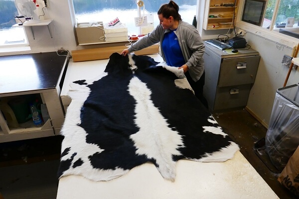 Storfehuder Så var det dags å sende ut returhuder av storfe. Hud frå storfe med sommar- eller haustpels har rette pelslengde og er mest reine i fargar pga. at dei går ute. Dyr som står lenge inne er mindre eigna, pga. dei blir mindre reine bak og det fargar pelsen brun. Dessutan kan dei bli utsette for lusangrep i pelsen og røytinga byrjar. Å klippe pelsen for etterpå å sende til beredning er ikkje lurt. Partiet som blei bereda nå var av nokså god kvalitet med omsyn til pels og fargar. Nokre blei tatt ut av produksjon pga. surflekker, men dei blei etterpå avhåra og garva til lær. Produsenten som får prakteksemplaret på fotoet har valgt den rette huda som sitt returskinn.