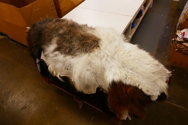 Litt info om skinn me får til behandling. Denne veka har halvparten av våre tilsette fått juleferie, men dei øvrige driv for fullt med å sende ut ferdigproduserte skinn til private kundar, forhandlarar og leigeberedningskundar. Akkurat nå har me sendt ut skinn for leigearbeid av nappaskinn (parti 511) og skinn av elg, hjort, moskus, lama, rådyr, bjørn, dådyr mv i parti 710. Dei gjekk i arbeid 2. november og blei klar til utsending nå.