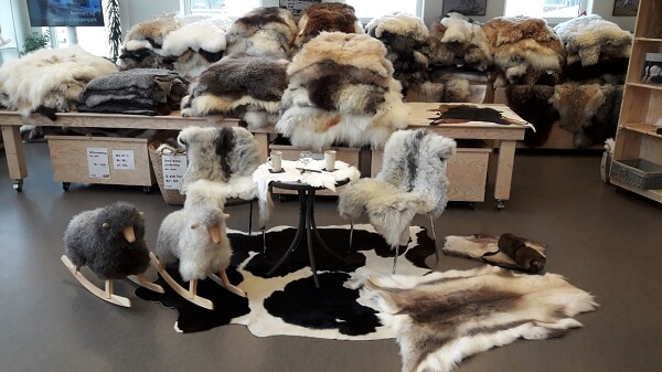 Vinterferie No er det vinterferie og kos på hytta. Med saueskinn i stolen sitter du varmt og godt eller har eit sitteunderlag av rein med deg på tur. Me har godt utval i fabrikkutsalget. Velkommen innom.