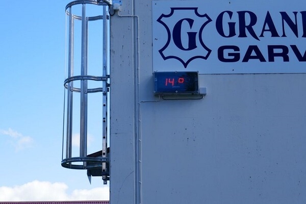 Tid og temperatur Værmelding kan me ikkje gi, men temperaturen i lufta samt klokkeslett kan alle få med seg når du går, spring, syklar eller kjører forbi garveriet.