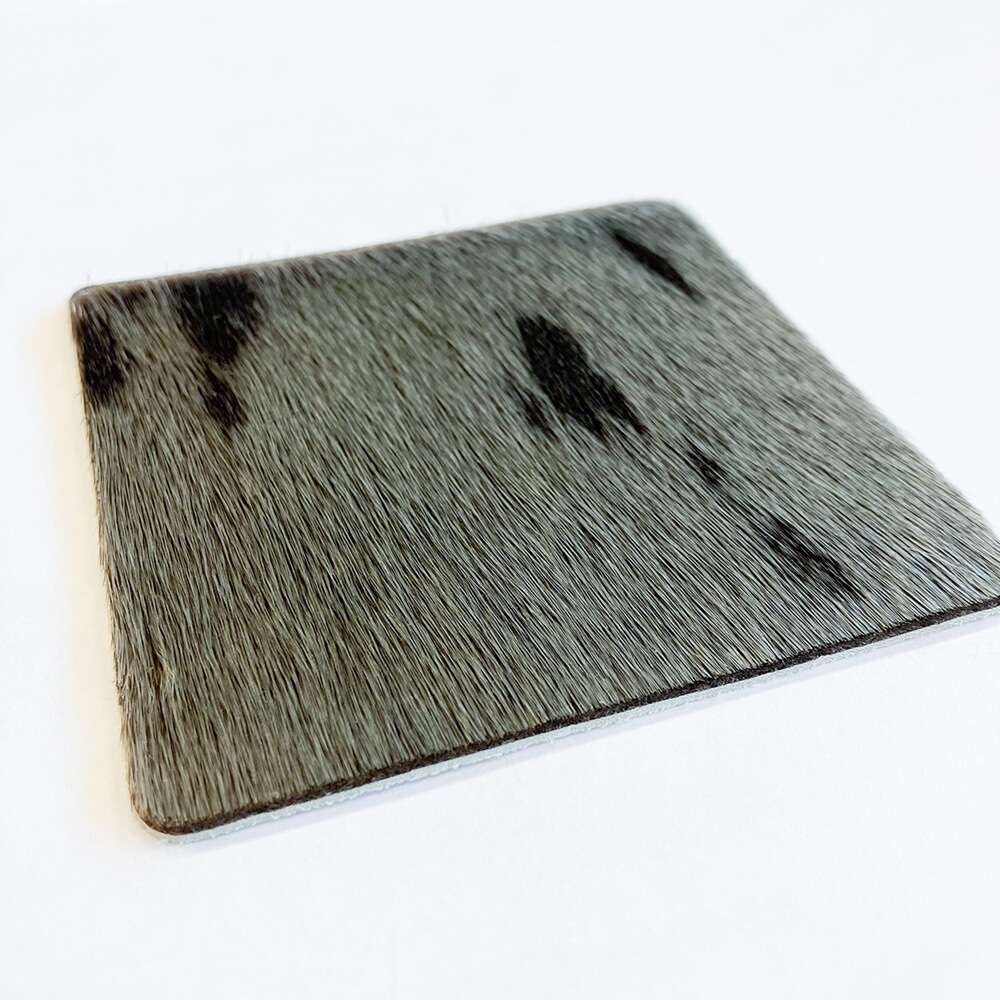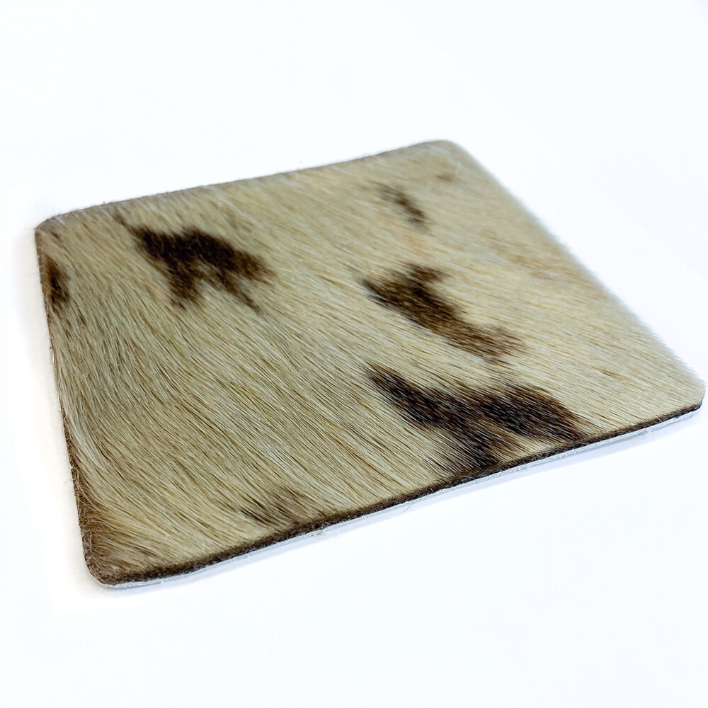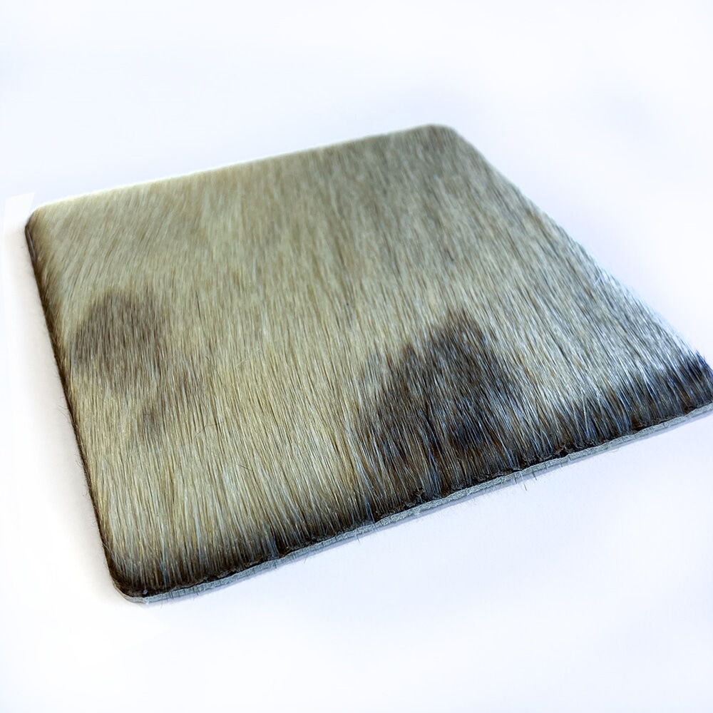 Dekorativ selskinnsbrikke i varierande fargar og mønster til underlag på spisebord m.m.